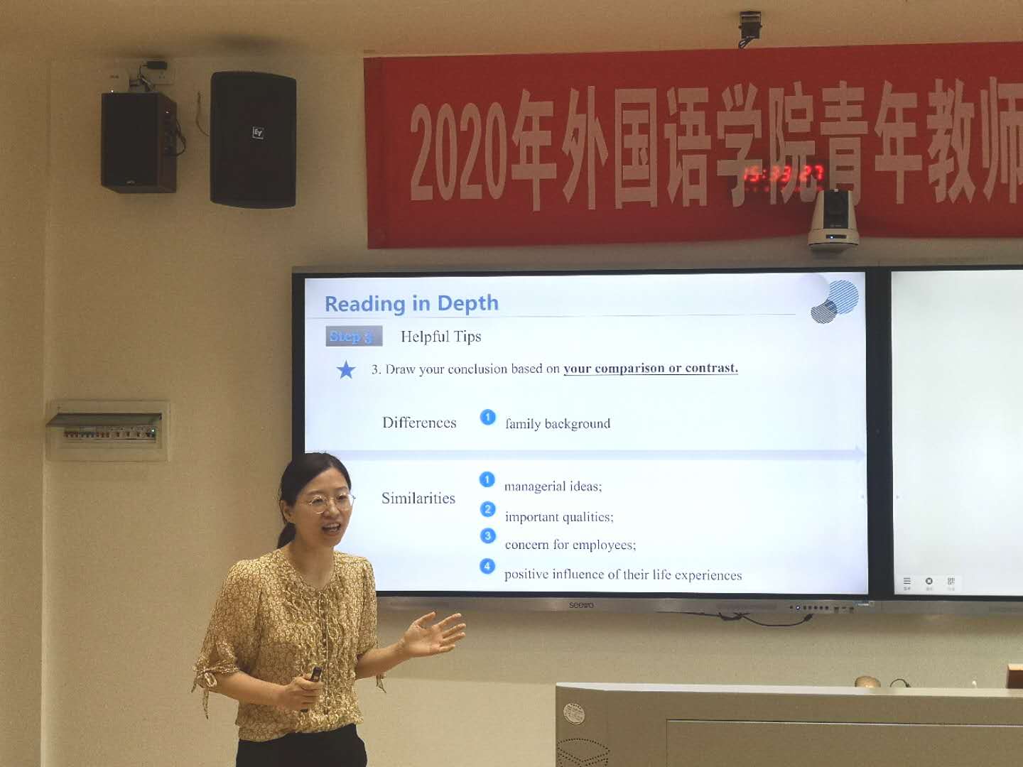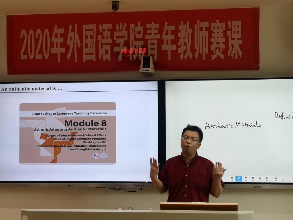 为加强青年教师队伍建设,提高青年教师教学水平,6月28日下午,威尼斯金沙欢乐娱人城在腾龙楼304教室举办了2020年青年教师教学竞赛,本次比赛全程通过网络进行同步直播,学院曾艳钰院长、唐建文书记以及部分教师在线上进行了观摩。本次青课赛评委由副院长廖光蓉教授、副院长兼俄语系主任高荣国教授、翻译系主任余承法教授、日语系主任向卿副教授、公外部主任梁斌副教授、副主任张清明副教授和法语系代主任王芳副教授担任。