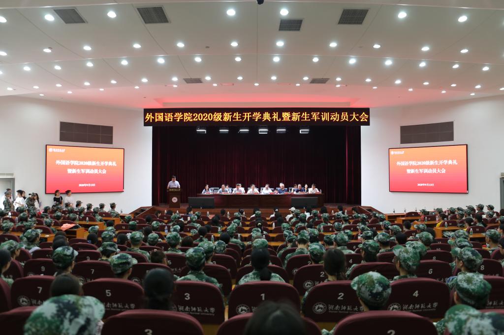 (通讯员 常红钰 夏秦萍)9月13日上午,威尼斯金沙官网在国际学术报告厅隆重举行2020级本科新生开学典礼暨新生军训动员大会。学院党委书记唐建文,副院长谭福民教授,副院长廖光蓉教授,副院长、俄语系系主任高荣国教授,副院长司徒皓,英语系系主任陈敏哲教授,翻译系余承法教授,学院院长助理蒋莉华副教授,法语系系主任方丽平副教授,日语系系主任向卿博士,朝鲜语系系主任闫超博士,西班牙语系邢鸿儒博士,德语系范妮博士出席大会。大会由学院党委副书记贺慧星主持。