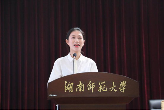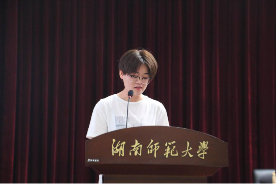 在学生代表发言环节中,2019级老生代表周洋同学分享了自己在师大的学习感悟,激励大家勇于创新,开辟一片属于自己的新天地;2020级新生代表杨子泠同学讲述逐梦师大的经历,并祝福同学们在美丽的师大土地上收获真知与理想,不忘初心,未来可期。