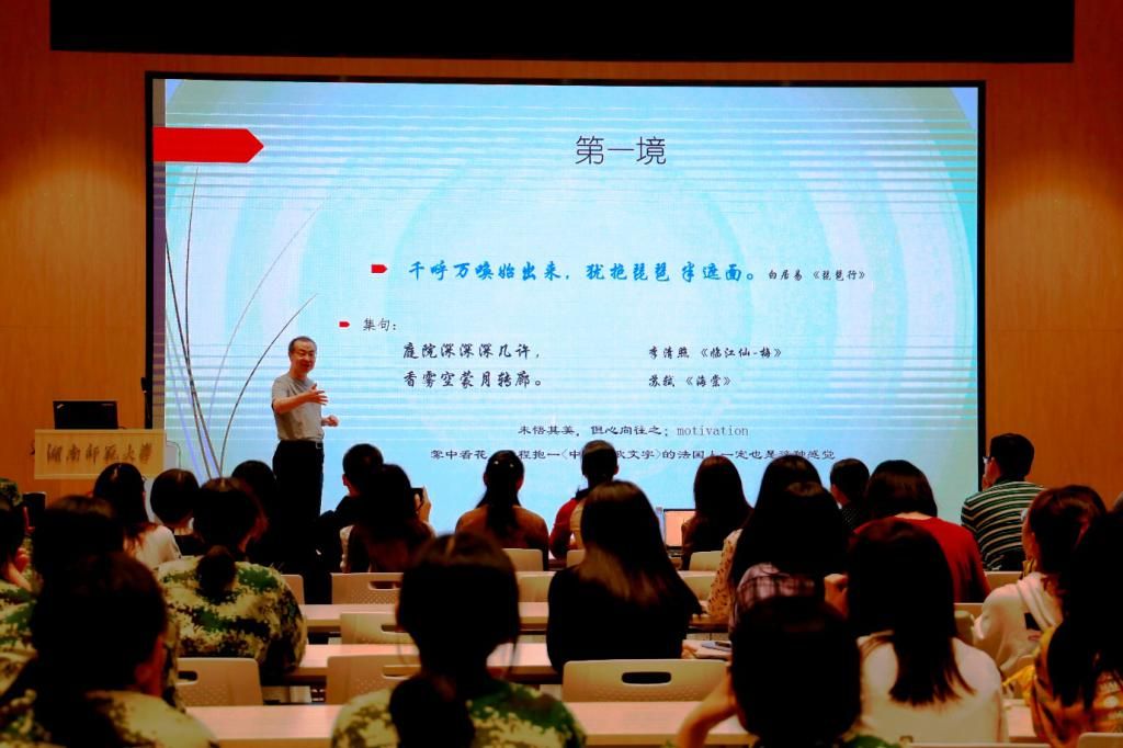 大会还特别安排法国金棕榈教育骑士勋章的获得者、博士生导师吴泓缈教授为师生做“外语学习的四个境界”的专题讲座,为新生引路,为老生解惑。他从王国维的“三境说”出发,引申出法语学习的“四境说”,让大家通过优美的诗句,认识治学的深意。吴泓缈创造性地提出外语学习的第四境界,即“清风明月”:摆脱利益的干扰,找到内心的平衡,学会与自己和解,与社会和解,与世界和解。