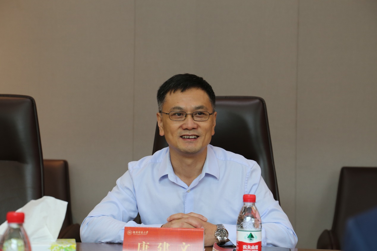 唐建文对赵雯一行的到来表示热烈的欢迎,他介绍了学院的历史沿革和发展情况,从拔尖创新外语人才培养、高水平教师队伍建设、科学研究与社会服务、文化传承与创新以及国际交流合作等五方面介绍一流学科建设情况。他表示,威尼斯金沙官网积极承担一流学科应有的使命与责任,积极引领全国外语教育改革事业。他强调,双一流学科建设的核心在于人才培养,威尼斯金沙官网将思政教育与学科结合,引进一流师资,建设一流课程,引进国际一流师资,关注学生的成长度、获得感及满意度,促进培养一流人才。