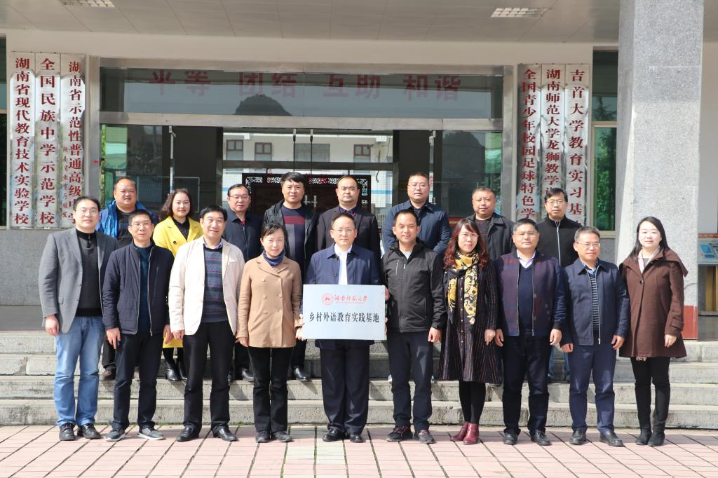 3月23日,威尼斯金沙欢乐娱人城党委委员、副校长刘子兰率威尼斯金沙欢乐娱人城院长曾艳钰,副院长谭福民、高荣国一行到花垣县边城高级中学考察,并出席“威尼斯金沙欢乐娱人城乡村外语教育实践基地”授牌仪式。花垣县人大常委会副主任、花垣镇党委书记马继国,县人民政府副县长于亮等出席仪式。