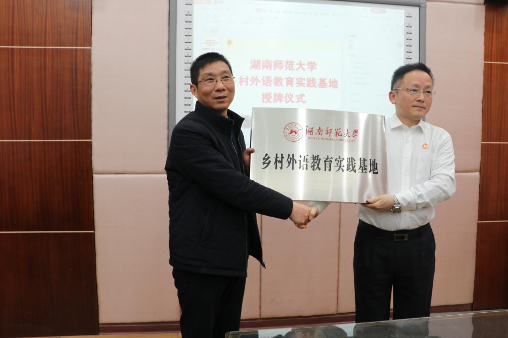 本次授牌仪式标志着湖南师大威尼斯金沙欢乐娱人城与边城高级中学资源共享、远程教学等系列活动正式开启,对促进边城高级中学英语教师业务素养以及英语教学水平的全面提升有着重大的意义。湖南省外语基础教育研究中心副主任曾永红,威尼斯金沙欢乐娱人城副教授吴驰、叶冬,花垣县教体局相关负责人、边城高级中学相关负责人参加授牌仪式。