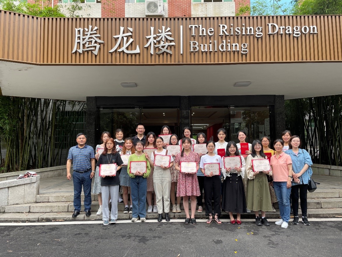 经过激烈角逐,最终3名同学脱颖而出获得一等奖,3名同学获得二等奖,4名同学获得三等奖,其余7名同学荣获优胜奖。高荣国、李谨香、李政文分别对本次比赛进行了点评,勉励同学们在以后的学习中更加勤奋努力,并为获奖选手颁发了荣誉证书和奖品。随后参赛人员和评委老师在腾龙楼前合影留念。