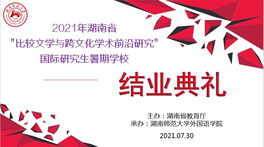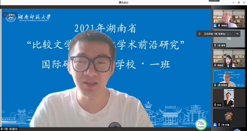 2021年湖南省“比较文学与跨文化学术前沿研究”国际研究生暑期学校于7月17日开幕,为期两周,是我省实施研究生教育创新工程的一项重要举措,在推进和深化研究生教育教学改革,拓展研究生学术视野与研究思路、激发科研兴趣与创新思维、提高人才培养质量等方面产生了重要的积极作用,已成为湖南省研究生教育的品牌和名片。