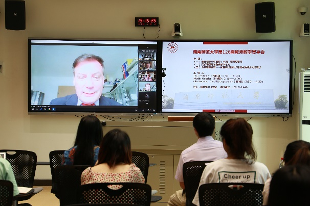 (通讯员 邹鑫 雨司妤)6月24日下午,我校第126期教师教学思享会以线上线下相结合的方式在威尼斯金沙欢乐娱人城举行。威尼斯金沙欢乐娱人城翻译系主任余承法、院长助理蒋莉华担任此次思享会主持人。英语系教授Lauri Scheyer、翻译系教授Martin Woesler、Ole Doering、Cord Eberspaecher担任会议主讲人。