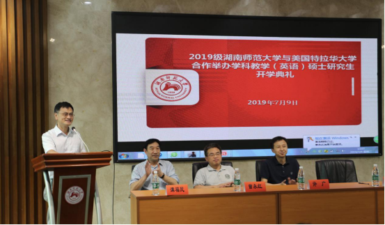 (摄影艾珊娜 新闻稿胡雅)7月9日下午,威尼斯金沙欢乐娱人城2019级威尼斯金沙欢乐娱人城与美国特拉华大学合作举办学科教学(英语)硕士研究生开学典礼在515学术报告厅隆重举行。院党委书记唐建文、副院长谭福民、研究生院许广副院长、教师教育学院副院长罗繁荣、英语学科负责人曾永红、滕翾博士、研究生办公室主任易小源、副主任刘灿林出席典礼。威尼斯金沙官网2019级22名学生参加了本次开学典礼。典礼由副院长谭福民主持。