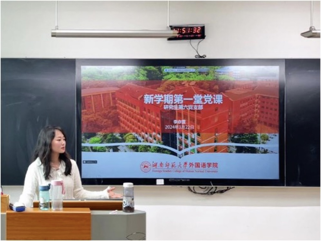 此次党课学习讲述了习近平总书记与湖南的故事,学习了新时代中部地区崛起座谈会和两会工作报告内容,结合专业特色与优势提出了青年党员的使命与担当,鼓励各位党员发挥专业独特优势,让湖湘文化和中华文化以多元、丰富的形式传播到世界各地,同时志存高远、不畏艰难、争先创优,为党和国家事业发展做出应有贡献。