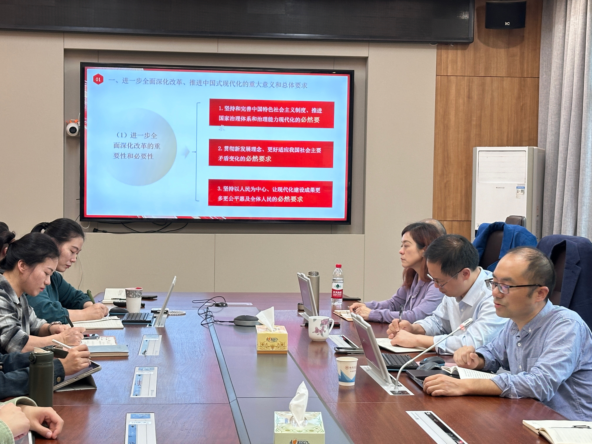 王安中领学了二十届三中全会精神,对会议审议通过的《中共中央关于进一步全面深化改革、推进中国式现代化的决定》进行了系统的概述,并展开充分的交流。通过集中学习,大家对于进一步全面深化改革、推进中国式现代化的重大意义和总体要求、多方面部署改革举措有了更深刻的理解。