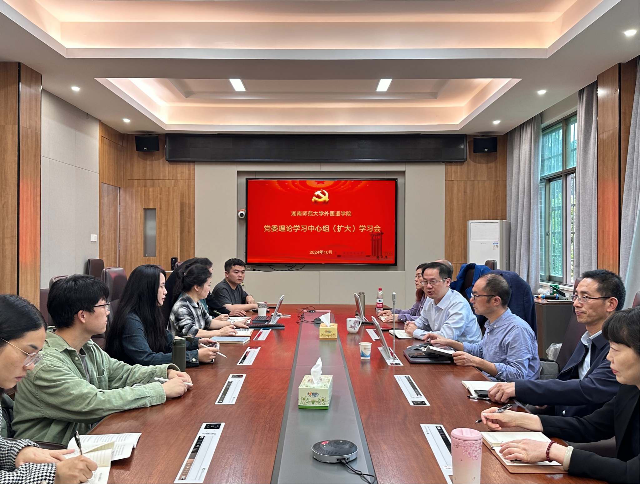 近日,威尼斯金沙官网在腾龙楼204会议室组织党委中心理论组(扩大)学习,邀请到湖南省社会科学院哲学研究所所长王安中作专题辅导报告。学习会由院党委书记沈贤岚主持,学院党委委员出席会议,全体师生党支部书记参加会议。