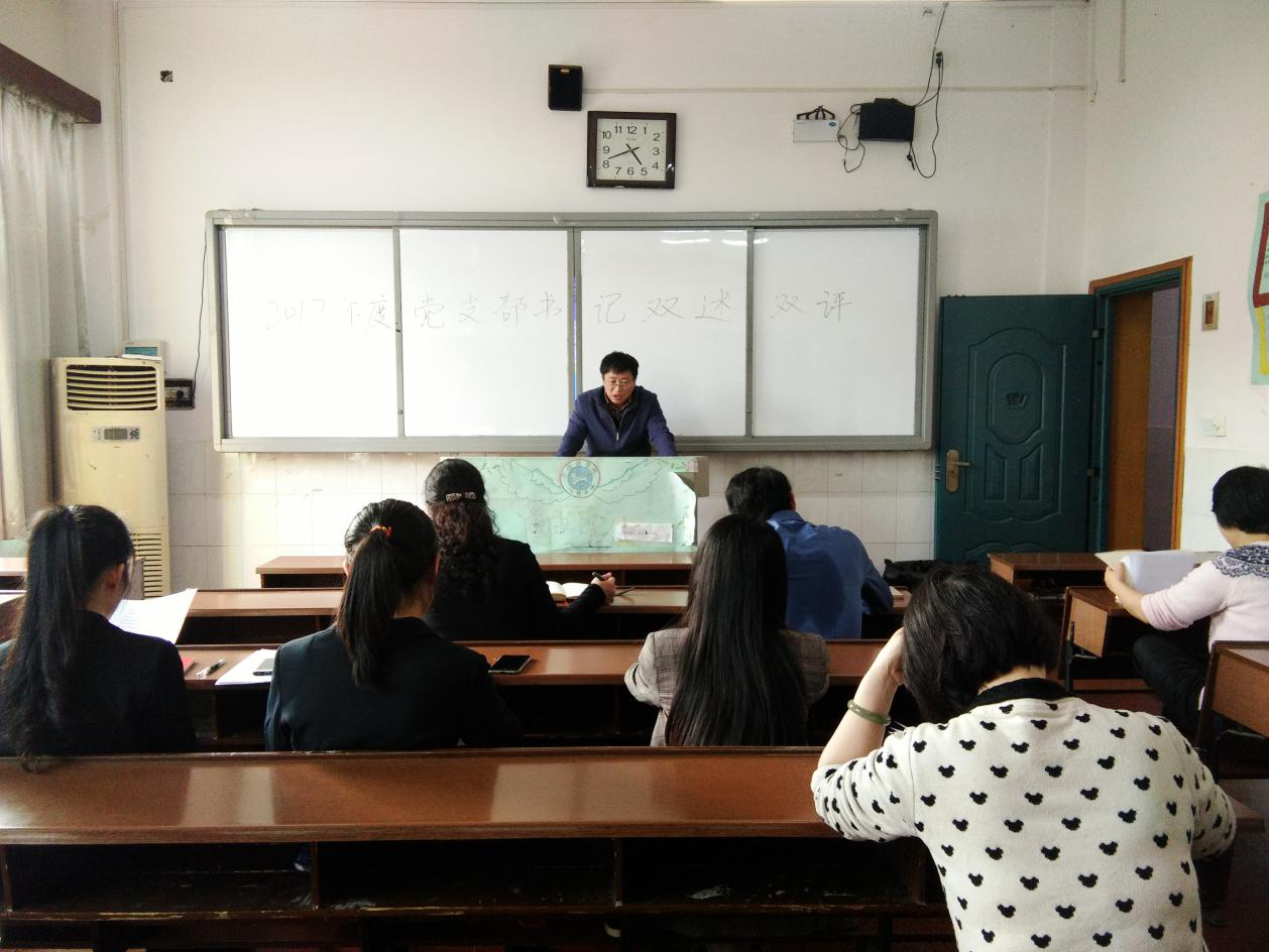 (通讯员李梦铃)3月15日下午,威尼斯金沙官网在310教室召开2017年度党支部书记双述双评会议。党委书记余英、副书记贺慧星、教师代表、学生代表出席会议,全体教工、学生支部书记参加述职。