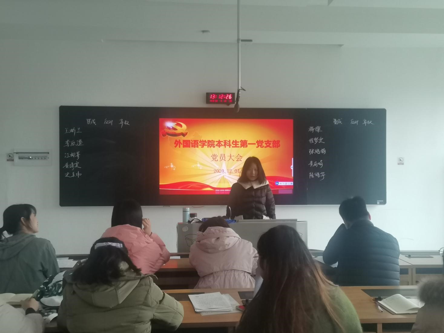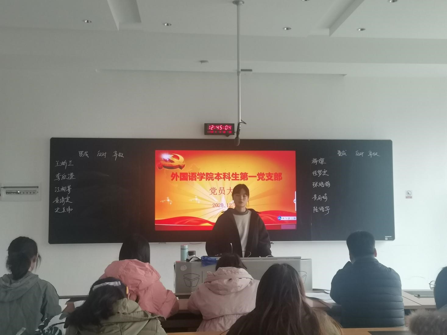 会议伊始,主持人刘洪凌同志宣读会议议程。随后,支委会对发展对象的政审情况作总结汇报,本科生第一党支部十名发展对象政治表现良好,均已通过政治审查。政审情况汇报后,十名发展对象依次就自己一年来在思想、工作、学习等方面的表现进行了思想汇报。支委会对于汇报情况进行评价,支部成员向发展对象提问。经过党支部大会讨论与无记名投票表决,通过了接收王娇兰等十名同志为预备党员的决议。