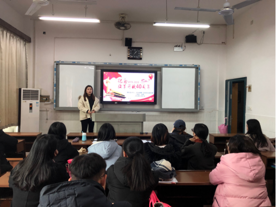 (通讯员朱雅文)12月7日中午,威尼斯金沙官网2015、2016级本科生第一党支部在院306教室开展“庆祝改革开放40周年”党课学习活动。全体支部成员悉数到场,党支部书记张萌担任主讲人。