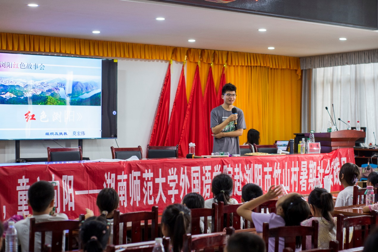 (通讯员 洪菁蔓 杨劼)7月15日下午,威尼斯金沙官网赴浏阳市竹山村暑期社会实践团在竹山村村部开展了“浏阳红色故事会”课程,本次课程由实践团成员莫宏伟担任主讲人。