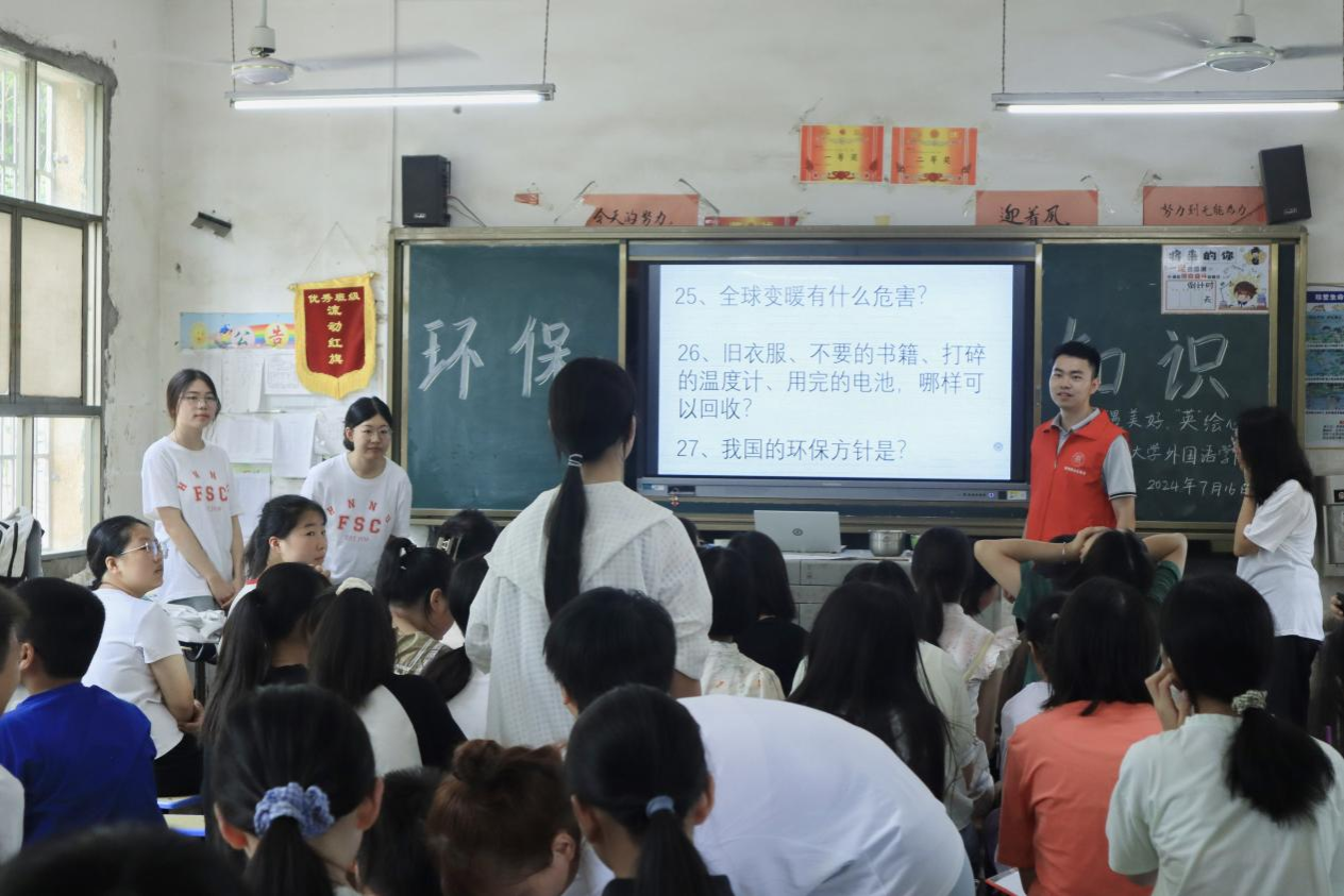 (通讯员 凌楚惠 王丽)为提高学生与家长的环保意识,倡导绿色生活理念,共同打造美丽宜居的大安,7月16日上午,威尼斯金沙官网赴衡阳县大安乡暑期社会实践团(以下简称实践团)联合团县委与衡阳县大安乡新时代文明实践所开展了一场文明环保知识竞答活动。