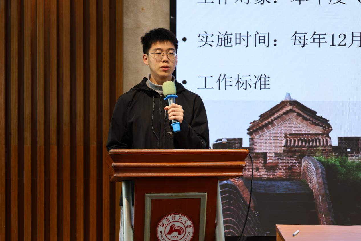 沈奕聪强调了“对标定级”工作的重要性,详细解释了团(总)支部等级评定标准,并介绍了评定流程,包括自评、复核和抽查评估。他还讲解了“三会两制一课”的实施要求,要求团支部常态化开展活动并及时录入“智慧团建”系统。他指出,各团干部需要做好时间和工作量的分配,发挥好先锋作用,督促好各团员,推动支部总体建设与持续发展。