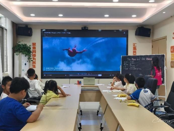 志愿者们先向小朋友们提出问题:大家有看最近火爆上映的“哪吒2”吗?大家对“哪吒2”里哪个情节印象最深刻?随后引出中华文化中对英雄的理解:英雄来自于普通人,并且英雄与普通人可以相互转化,阐述了中华文化中的英雄主义根植于集体主义。随后通过观看电影“蜘蛛侠”的片段,志愿者们向小朋友们具体展示了西方世界中的个人英雄主义,展现了不同文化中人们对英雄主义的不同理解。在实践环节中,小朋友们着手开始制作英雄徽章,通过动手实践的方式,让课堂妙趣横生。志愿者还带领小朋友们学习了文化相关的英文单词,如hero(英雄),responsibility(责任),prejudice(成见)等。
