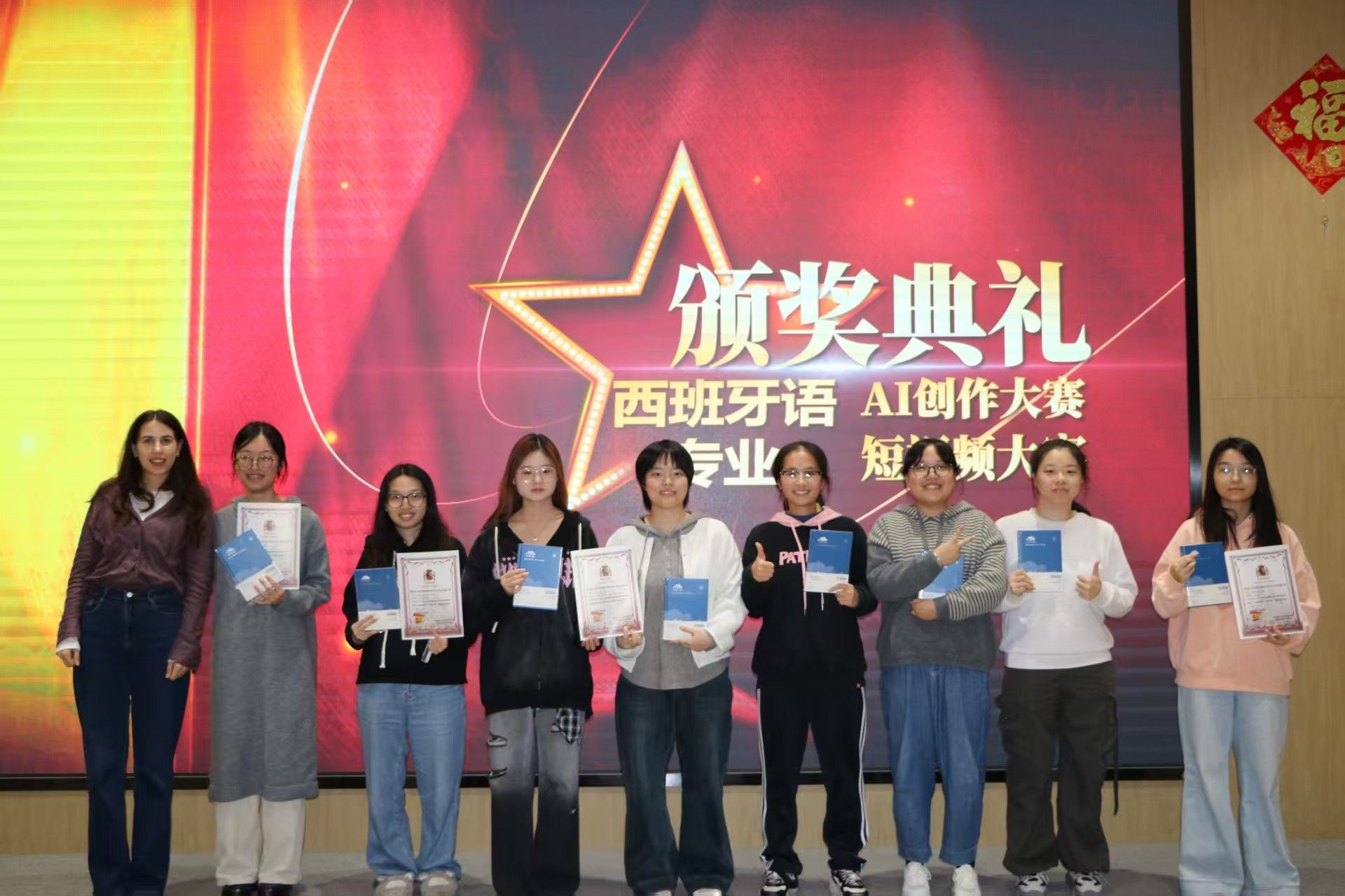 (通讯员 刘明舒 曾凯雯 汪长秀)2025年11月14日晚,第三届西葡语电影文化节闭幕式暨西班牙AI短视频创作大赛颁奖典礼在腾龙楼613教室成功举行。西葡语专业全体师生、2025级新生代表参加了本次活动。