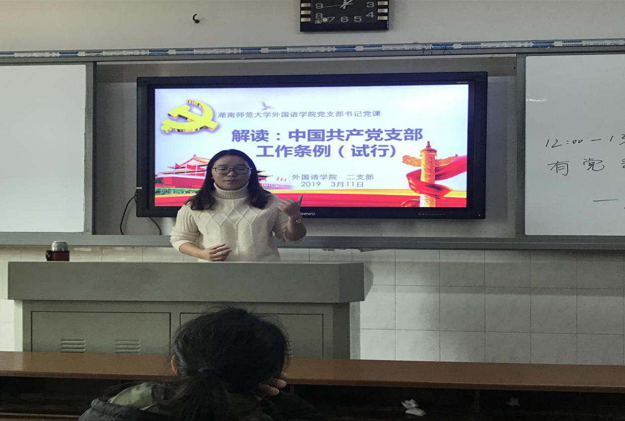 2019年3月11日,威尼斯金沙欢乐娱人城2017级研究生第二支部书记尹珍同志以“解读:中国共产党支部工作条例(试行)”为主题,给2017级研究生第二支部全体党员们上了一堂党课。她着重解释了党支部的组织设置、基本任务、工作机制、组织生活、委员会设置以及党支部的领导和保障。全体党员仔细聆听,并适时提出疑问。在尹珍同志的解读和引领下,党员们对《工作条例》都有了更深刻地认识,同时也启发了大家的思路,对以后的支部建设起到了积极作用。
