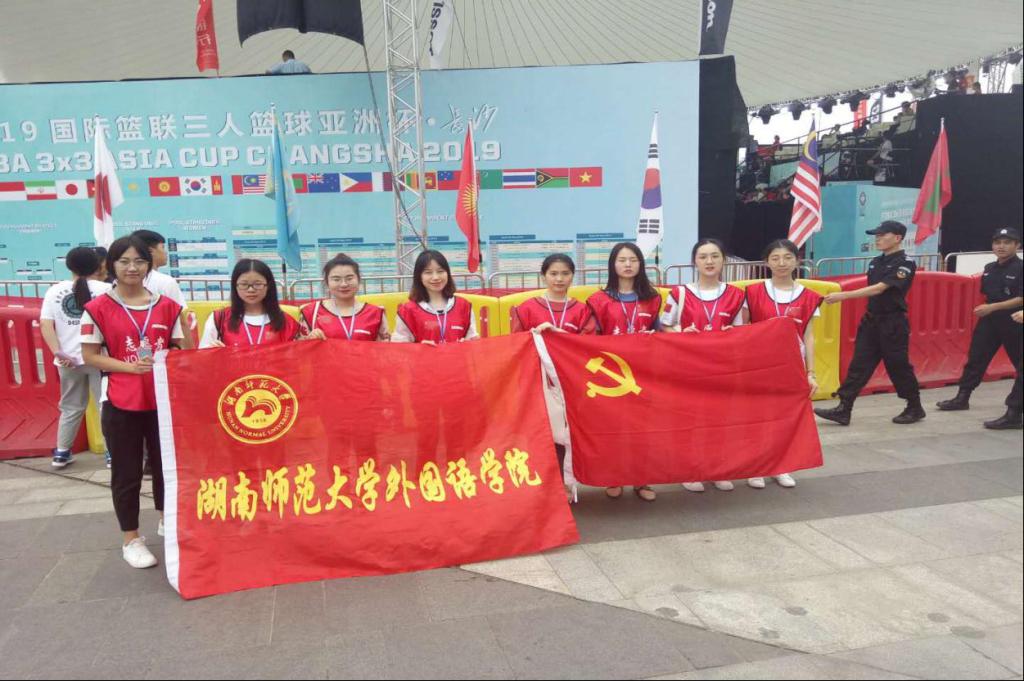 2019年5月20日至5月26日,威尼斯金沙官网2017级和2018级研究生第一支部在长沙梅溪湖步步高新天地联合开展了5月份的主题党日活动:为“2019年国际篮联三人篮球亚洲杯”提供英语、日语和韩语的志愿者,为外国球员提供翻译、指引等服务。此次主题党日活动的参与者共70人,其中包含党员46人,群众24人。在此次为期七天的志愿者活动中,无论党员或群众,大家始终尽心尽力,为“2019国际篮联三人篮球亚洲杯”的圆满完成贡献了一份力量。2017级和2018级研究生第一支部的同志们更是凭借出色的表现,为支部荣获了“优秀志愿者团队”的称号。
