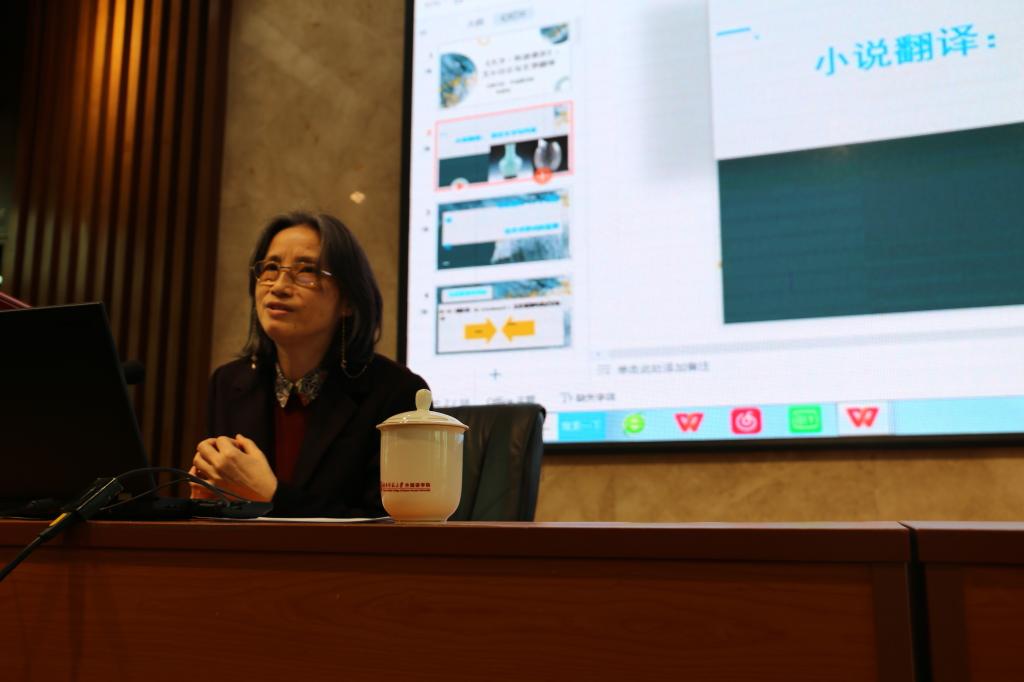柯彦玢教授将理论之光照进现实之路,引经据典、深入浅出地阐述了高质量的文本细读对高质量的小说翻译的决定性意义。她丝丝入扣的阐读、鞭辟入里的剖析让从事文学研究与翻译研究的在场师生受益良多。讲座最后,刘白教授对此次讲座进行了总结,并对柯教授表示诚挚谢意。讲座在热烈的掌声中圆满结束。