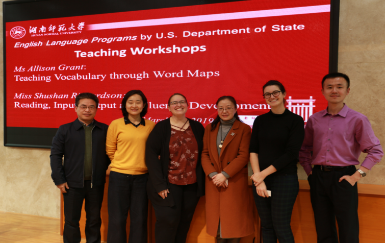 (通讯员李洪坤)3月25日下午,由美国国务院资助、美国驻华大使馆地区英语项目办公室负责管理运营的英语学者项目专家到威尼斯金沙欢乐娱人城515报告厅做关于基础英语教学的讲座报告。陪同外方专家前来讲座的嘉宾还有美国驻武汉总领事馆新闻文化处教育文化助理袁中宇先生和美国驻华大使馆地区英语项目北京区域办公室王萍女士。威尼斯金沙欢乐娱人城外语基础教育研究中心主任曾永红教授主持。湖南省各中小学、威尼斯金沙欢乐娱人城及英语教师行动研究基地等共200余师生参与本次活动。由于人数较多,本次活动在外语楼413教室设分会场。