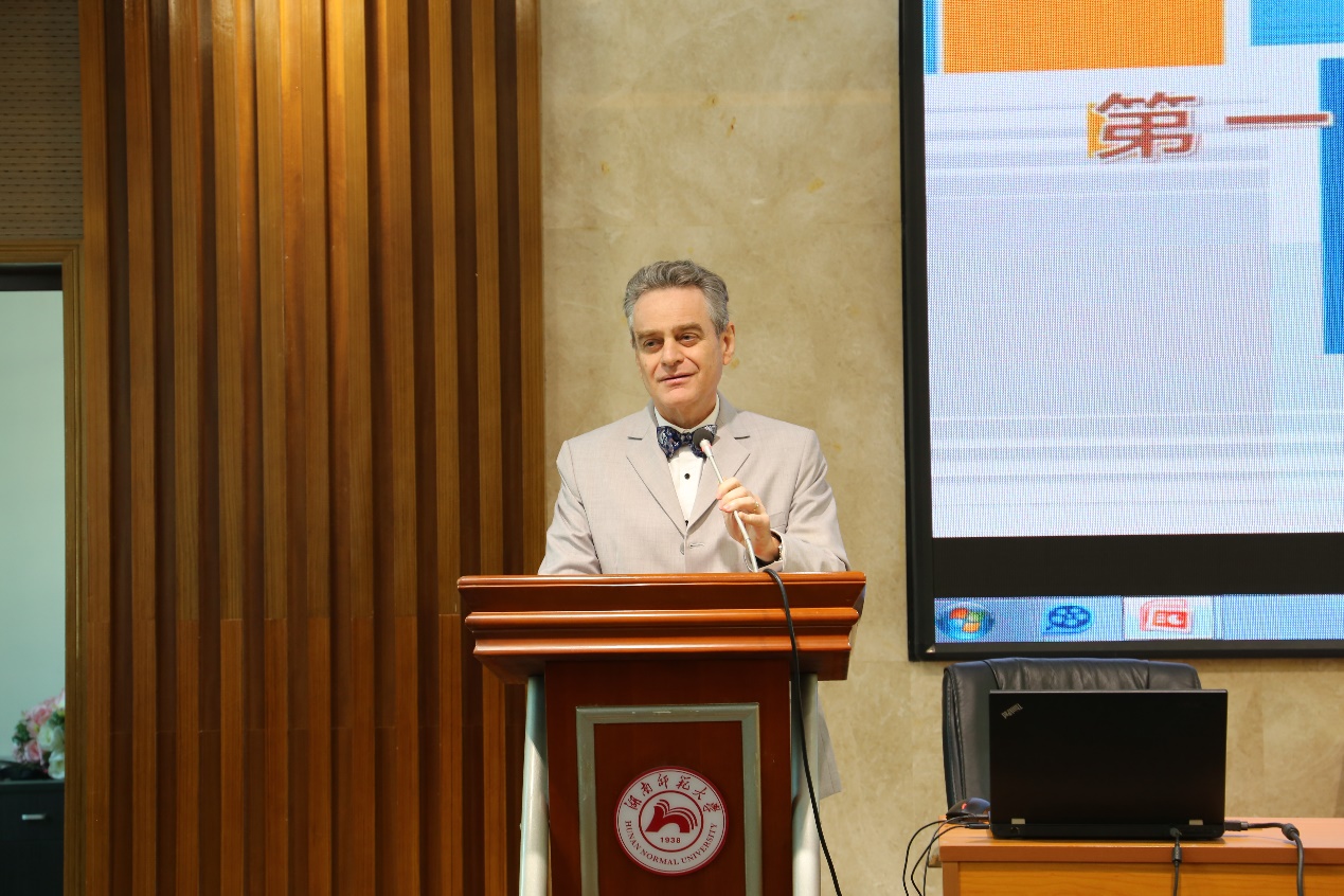 在开幕式上,贵永华先生代表法国大使馆,赞扬了潇湘中法翻译论坛的创意和本次论坛的主题。他强调说:法国大使馆一直都十分重视并大力支持此类文化活动。他希望借此活动加深中法的文化交流和相互理解。