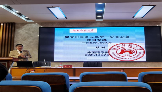 讲座中,修刚教授就日语专业的学生在打好坚实语言基础的前提下,如何进行有效的中日跨文化交流阐述了自己的见解。通过一个个幽默、风趣的小故事,结合自己人生经历深入浅出地分析了作为外语人才应具备“语言+文化”的跨文化交际能力的重要意义,并着重强调了正确理解中日政治经济、历史文化、风俗习惯等领域存在的异同性的必要性。