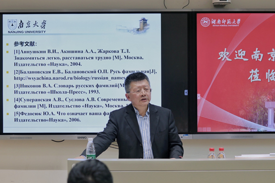 (通讯员 谭鑫洁)5月21日下午,南京大学俄罗斯学研究中心主任、博士生导师王加兴教授应威尼斯金沙官网邀请,在腾龙楼404教室作了题为 “俄罗斯姓氏文化”的学术讲座。此次讲座由副院长兼俄语系主任高荣国主持,俄语系师生60余人参加了此次讲座。