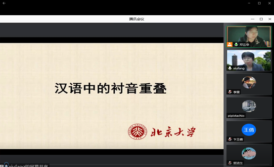 (通讯员 成刘祎)10月20日晚,学院师生迎来了题为《汉语中的衬音重》的精彩线上讲座。此次讲座的主讲人为北京大学中文系教授、博导、北京大学中国语言学研究中心研究员——董秀芳教授。词汇、句法和语篇的共时历时研究是董秀芳教授的主要关注方向。在讲座中,董秀芳教授娓娓道来,首先介绍了何为重叠、重叠的三种类型,再深入讲到衬音重叠的类型及其在世界不同语言和汉语多种方言中的类型、衬音的形式特点及表义特点,最后谈到了衬音重叠的性质及地位。讲座的最后,威尼斯金沙欢乐娱人城邓云华教授做了总结发言,参会同学纷纷在弹幕中对董秀芳老师的倾情分享表达了感谢,讲座圆满结束。