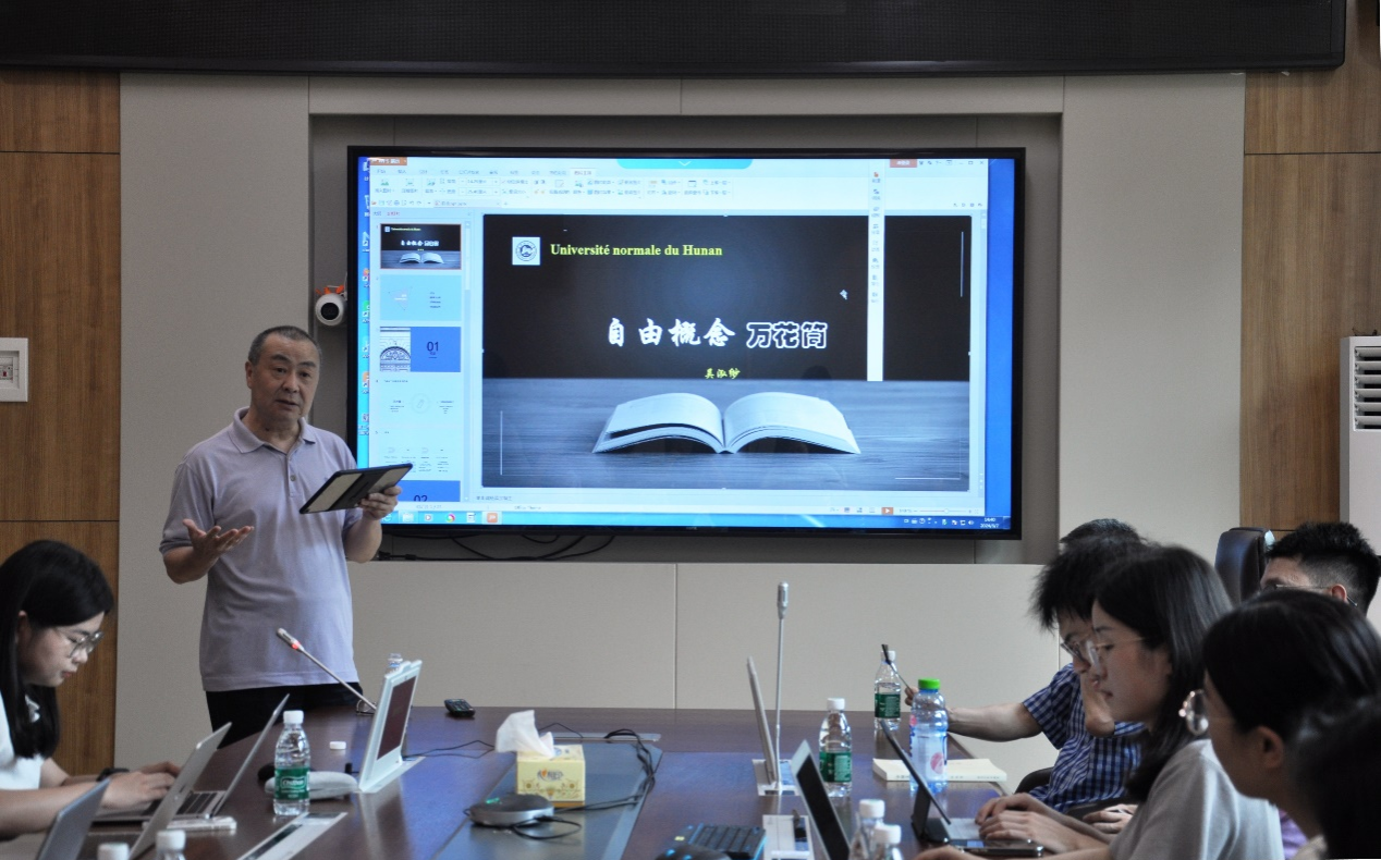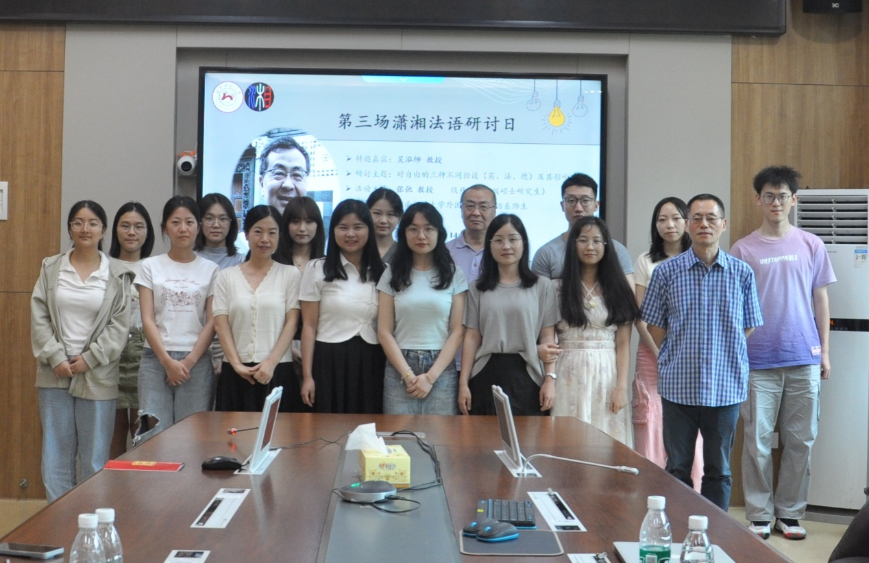 (通讯员 曹雪 陈丹 伊伟杰 岳思阳)2024年6月7日(星期五)下午,由威尼斯金沙欢乐娱人城法语系主办的“第三场潇湘法语研讨日”活动在腾龙楼204会议室举行。此次研讨的主题是“对‘自由’的三种不同预设(英、法、德)及其影响”,由吴泓缈教授主讲和答疑。法语系青年教师、硕博研究生和部分本科生参加了此次研讨活动。本次活动由张弛教授和2022级硕士研究生钱丹共同主持。本次活动由张弛教授和2022级硕士研究生钱丹共同主持。