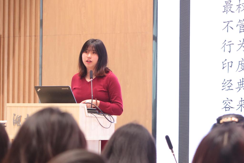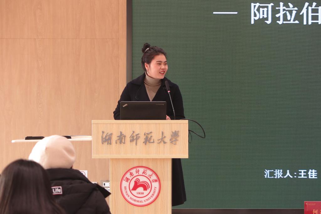 我校西班牙语系邢鸿儒博士、阿拉伯语系王佳博士和区域与国别研究南亚方向博士研究生任俐蓉做主旨发言。邢鸿儒以《聂鲁达爱情诗中的女性主体性》为题,系统介绍了聂鲁达其人,分享了西语学界乃至国际学界对聂鲁达爱情诗中的“她”作出的种种批判性评论,并提出了自己独到的观点。王佳以《阿拉伯文学里的一颗明珠——阿拉伯侨民文学》为题阐述了阿拉伯侨民文学的形成、阿拉伯侨民文学的特点、阿拉伯文学的代表人物和阿拉伯侨民文学的文学价值与历史意义等四个部分内容。任俐蓉以《徐梵澄作品中的印度形象分析》为题,分享了研读著名翻译家、印度学家徐梵澄先生译介的印度宗教及文学经典典籍的感悟,对其译本中呈现的印度形象进行多方位考察,论据充分,结论客观。