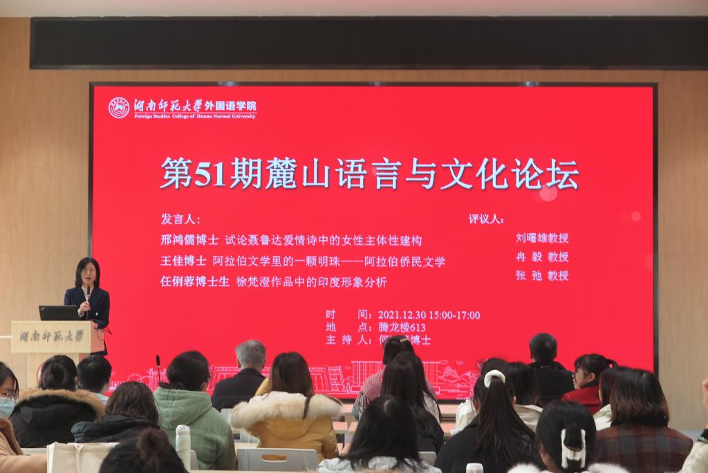 (通讯员 张怡然)12月30日下午,“第51期麓山语言与文化论坛”在威尼斯金沙官网腾龙楼613报告厅举行。我校南亚研究中心主任刘曙雄教授、日语语言文学专业冉毅教授、法语语言文学专业张弛教授作为评议嘉宾出席论坛。论坛由俄语语言文学专业何冰琦博士主持。