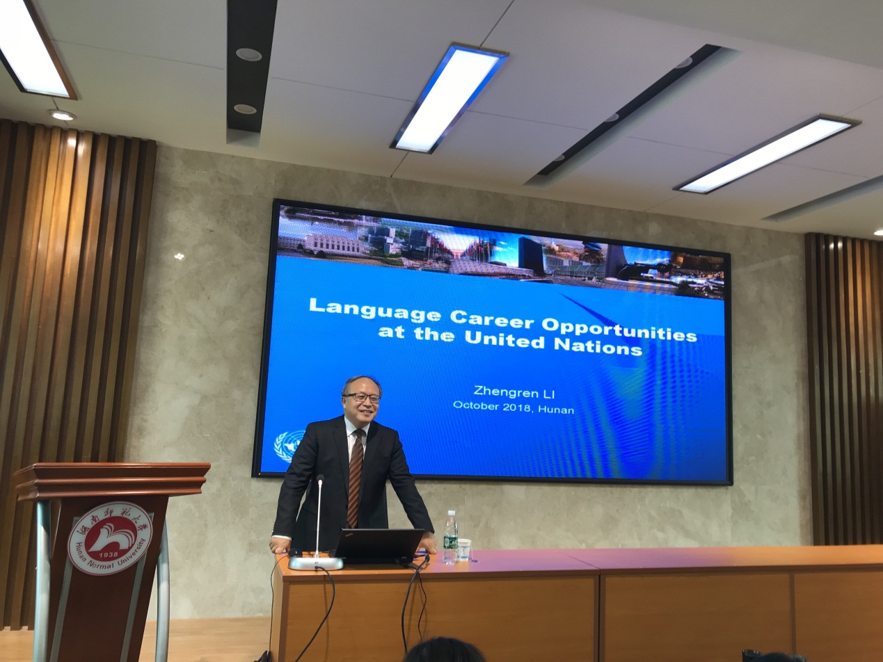 (通讯员许翌倩)10月11日下午,联合国驻日内瓦办事处会议管理部口译司司长李正仁教授受邀在515报告厅举行了题为“联合国中的口译实践”的学术讲座。此次讲座由蒋莉华老师担任主持人,威尼斯金沙官网百余师生到场聆听学习。