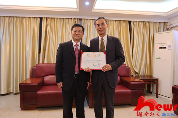 学术对话之前,校长蒋洪新在贵宾室会见了北美校友代表,感谢校友们对学校的关心与支持,并为我校外语系1976级校友、北美校友会理事会理事长何绍义博士颁发聘书,聘任其为我校北美人才联络工作站主任。