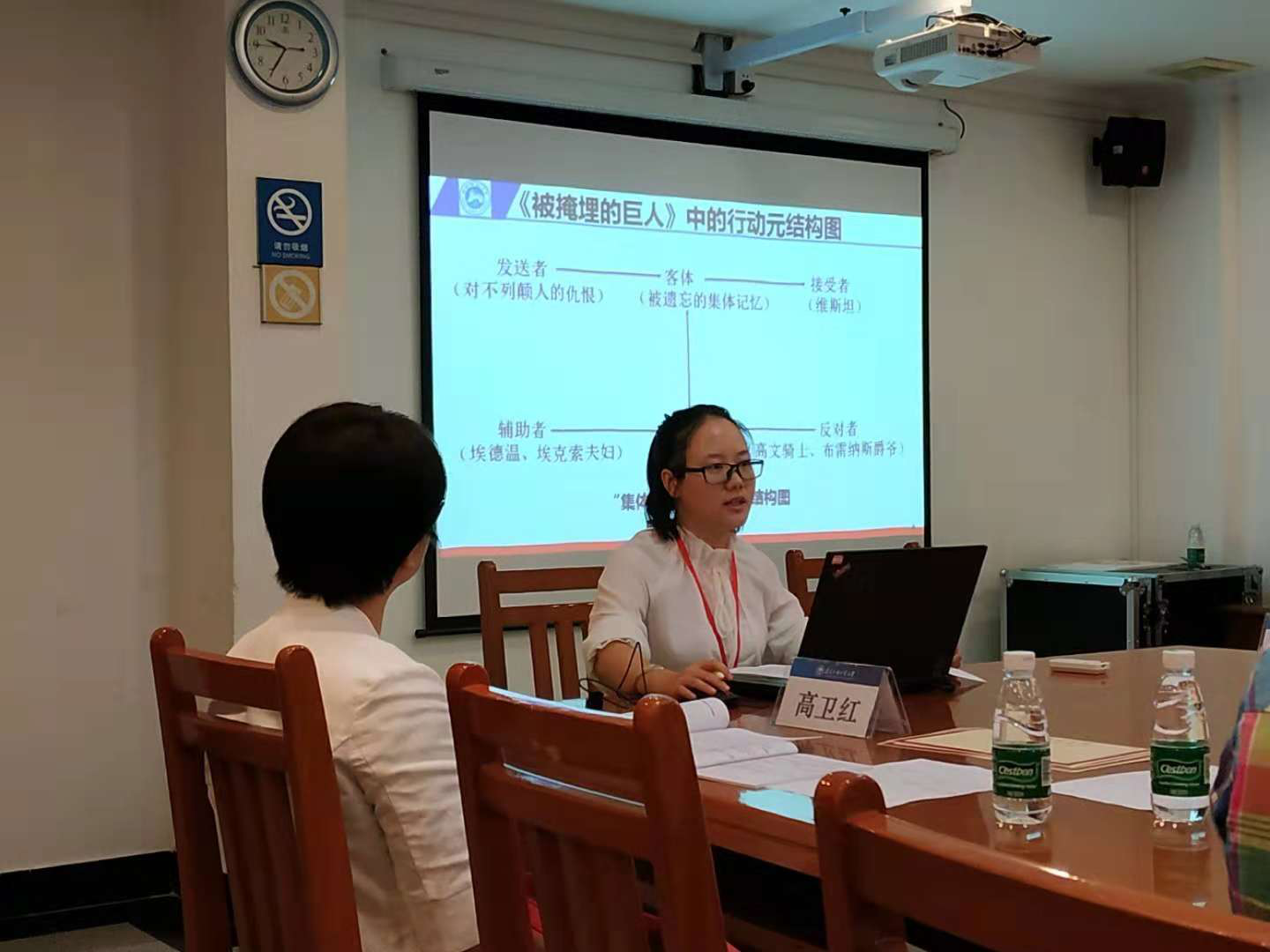 本次高峰论坛除了大会主旨发言,还开展了圆桌对话交流,并围绕会议主题设立了四个分论坛。与会专家及各位青年老师和学生进行了精彩纷呈、高潮迭起的分享、交流与探讨。杨静(指导老师:郑燕虹)在“全球视野与区域国别文学”分论坛上宣读了论文《记忆还是遗忘:基于格雷马斯行动元及语义矩阵理论视角下的研究》,并得到了点评专家的好评。