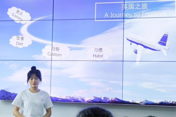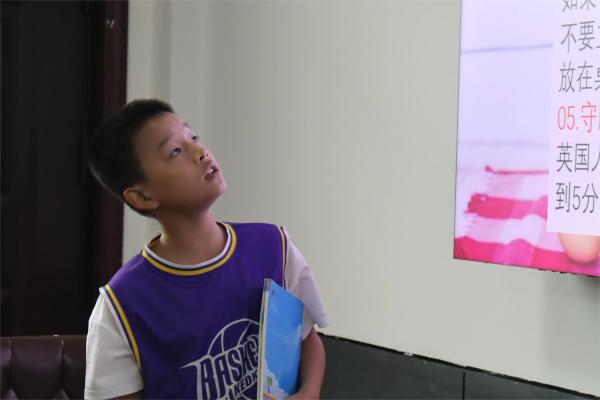 实践团成员古千慧以“文明透视”为授课主题,以英国为例,选取了建筑景点、特色美食进行讲解。她以中外文化比较为切入点,结合资料向同学们讲述了一些国外的特色习俗习惯,引导学生说一些自己身边的习俗习惯,启发他们进行文化比较。