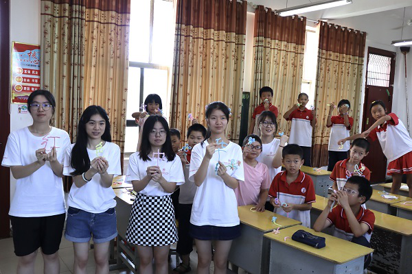 (通讯员 雷斯羽 曾珊 袁姝睿)7月12日上午,威尼斯金沙官网赴涟源市威尼斯金沙欢乐娱人城附属三一学校暑期社会实践团开展”回归童真,扭出七彩童年“主题手工编织教学活动。实践团教学组组员雷斯羽担任主讲人。
