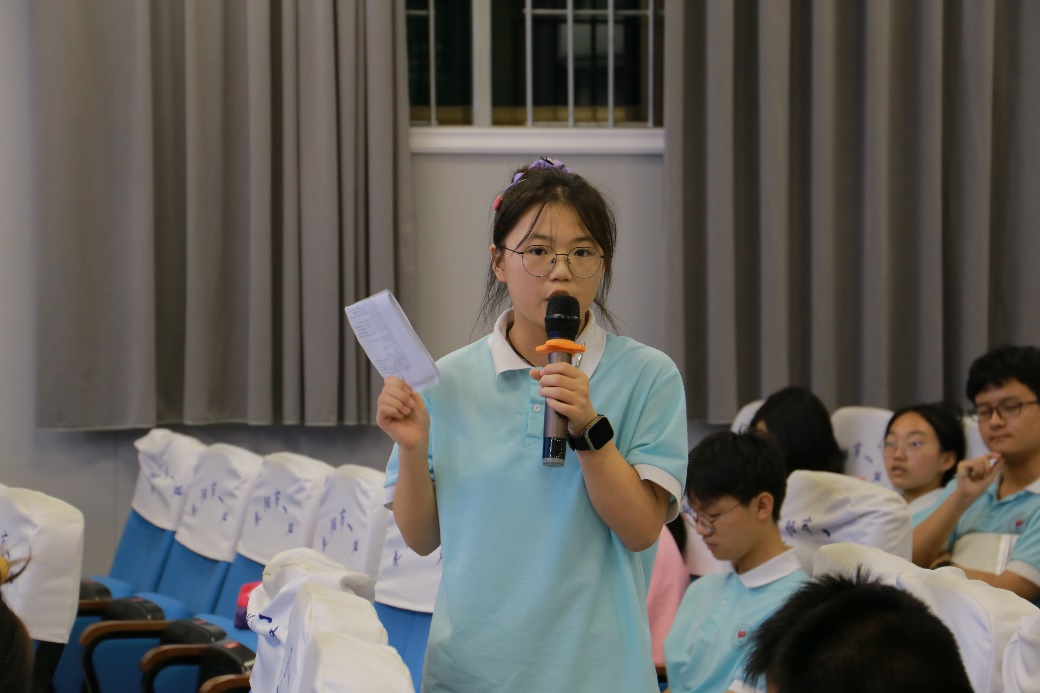 活动由杨思吟、王艺臻同志主持,主持人以同学们喜欢的明星开场,并提到偶像带来的积极意义以及过度的饭圈文化给高中学习生活带来的负面影响。耒阳一中高一3班和4班的同学们就此现象开展以“高中生应不应该追‘星’”为题的辩论赛。正反双方就此主题进行了开篇陈词,正方认为偶像的力量可以使他们变得更加优秀,反方认为高中生应以学业为重,明星德不配位现象层出不穷,会给他们造成不良影响。自由辩论环节正方辩手借用央视主持人撒贝宁所言“追星的人,其实追的是自己”,他认为,大家所追的星其实是自己未来状态的外射,正是因为想成为那样的人,才会追捧那样的星。而反方辩手紧扣辩题,抓住了“高中生”这个群体,他提出,目前高中生群体所追的大都是娱乐明星,不仅浪费时间和金钱还容易引发青少年群体的外貌焦虑,不利于学业和身心健康。评委朱素珍同志点评道“双方辩手紧扣主题,有逻辑、摆事实,展现了非凡的思辨能力和逻辑思维能力。”她表示,友谊第一,比赛第二,同学们应该在辩论的过程中形成综合多元的思维方式,树立正确的价值观。