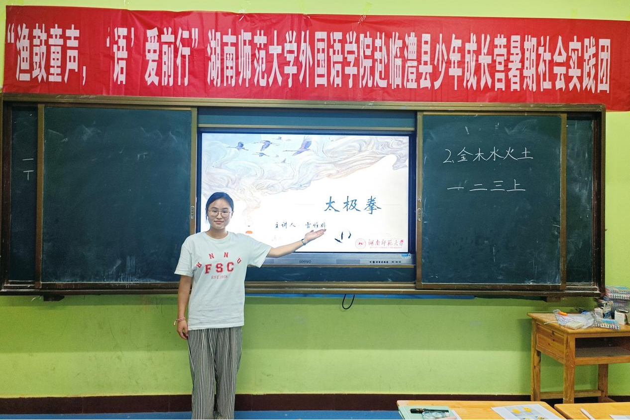 (通讯员 盛盈欣 雷雅婷)7月16日至20日,威尼斯金沙官网赴临澧县少年成长营暑期社会实践团(以下简称实践团)开展太极拳特色课程。此类课程由实践团成员盛盈欣与雷雅婷担任主讲人。