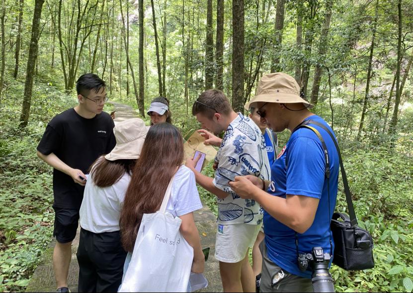 在张家界市博物馆、张家界国家森林公园等地,“服务旅游发展 提升湖南形象”实践团成员深入了解和学习张家界的历史文化、地理环境和社会事业等方面的情况,面向外国参观游客、景区工作人员发放了“英语使用者对张家界市博物馆解说词满意度的调查”“张家界市公共标识语翻译调查”等问卷359份,对景区和公众场所多语种标识标牌、讲解词、宣传栏等进行系统采集和归纳,拍摄图片资料1000余张,系统整理归纳英语、朝鲜语等在拼写、翻译、语法、语用、语义等方面的建议。实践团在张家界市实地调研期间,还与张家界市委外事办相关负责人进行了交流访谈。
