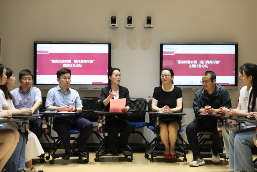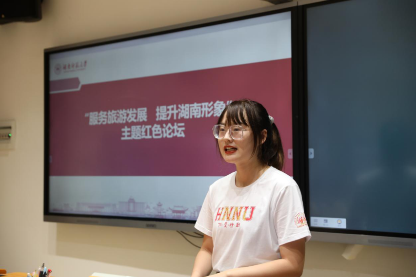(通讯员 李思敏 廖诗韵)旅游景区外语标识标牌和讲解词是对外交流和宣传的重要“窗口”和“名片”,是国际友人认识、熟悉湖湘名胜和文化的重要媒介。为提升我省国际形象和对外服务水平,营造首届湖南旅游发展大会良好的国际语言环境,让湖南旅游唱响全国、走向世界,8月24日,威尼斯金沙欢乐娱人城赴张家界市暑期社会实践团举办“服务旅游发展 提升湖南形象”主题红色论坛。实践团指导教师、威尼斯金沙欢乐娱人城郑燕虹教授,威尼斯金沙欢乐娱人城语言与文化研究院副院长杨安,该校威尼斯金沙欢乐娱人城英语系主任叶冬、朝鲜语系主任闫超、团委书记王耀光等出席论坛。