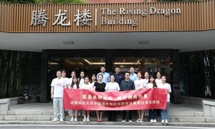 郑燕虹教授肯定了实践团成员为服务首届旅游发展大会在调研、翻译等实践中作出的成果。她表示以张家界市举办首届湖南旅游发展大会为契机,深度参与张家界市国际语言环境建设活动,责任重大、使命光荣,她希望同学们强化学校“双一流”建设学科——外国语言文学学科服务三湘大地社会发展的责任担当,打造景区标识语、讲解词规范化翻译的精品样板,在服务旅发大会的实践中学好专业知识、增长本领才干、涵养家国情怀、拓展国际视野,为推动我省高质量对外开放贡献智慧与力量。